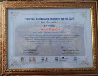 Hearty congratulations and good wishes to both the students of Tilaurakot Secondary School to win in drawing and speech competition organized by Tilaurakot-Kapilvastu Heritage Featival 2020 .Harishankar Badhai has secured second prize in drawing competition and Aarti Shrestha has secured 4th position in speech competition.